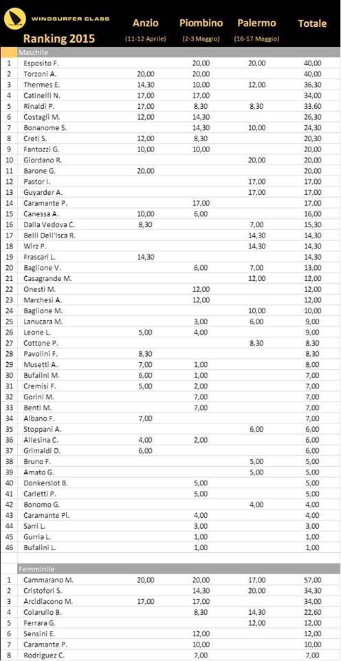 Dopo questa terza tappa la classifica del ranking vede ora al comando a pari punti Federico Esposito e Alessandro Torzoni.